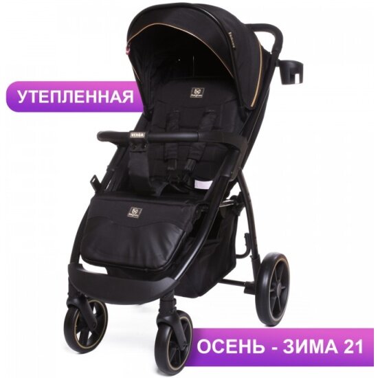 Коляска детская прогулочная Venga, всесезонная с накидкой для ног, большим капюшоном, полная комплектация, Babycare, черное золото