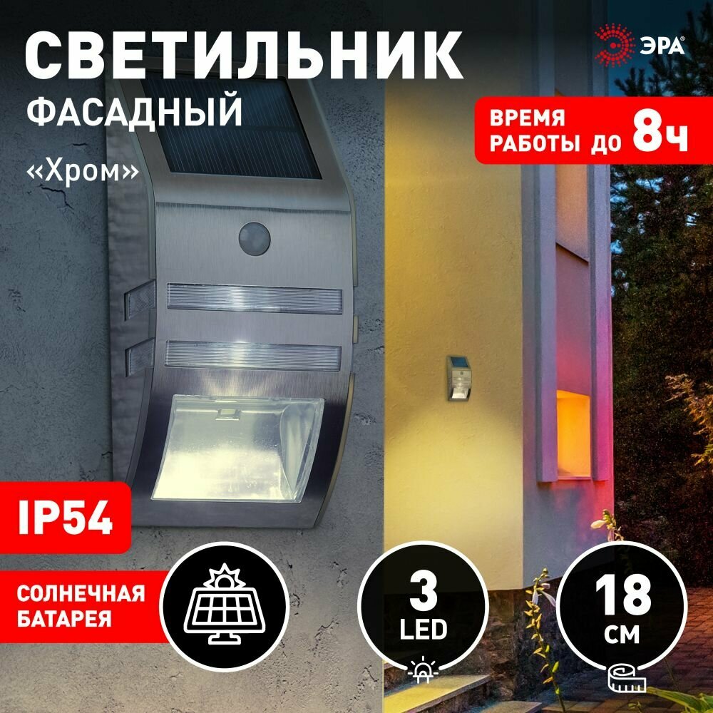 ЭРА Фасадный светильник Хром, на солнечной батарее, 3LED, 50lm (12/864) интересное: