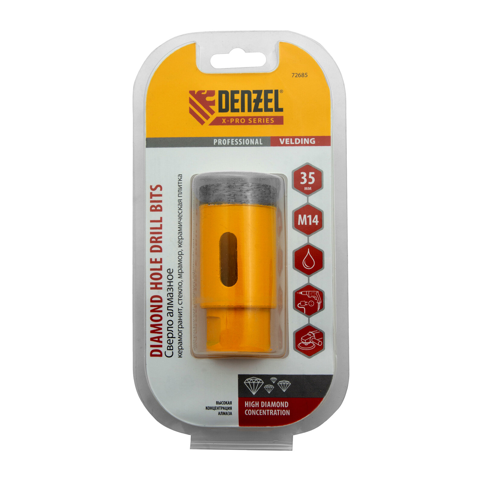 Купить Сверло алмазное по керамограниту Denzel 35 мм, мокрое резание, М14 72685