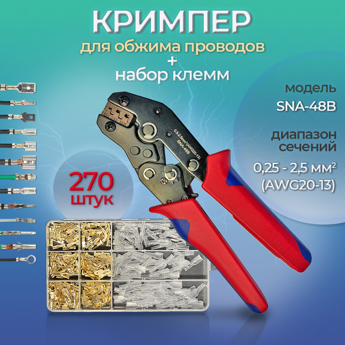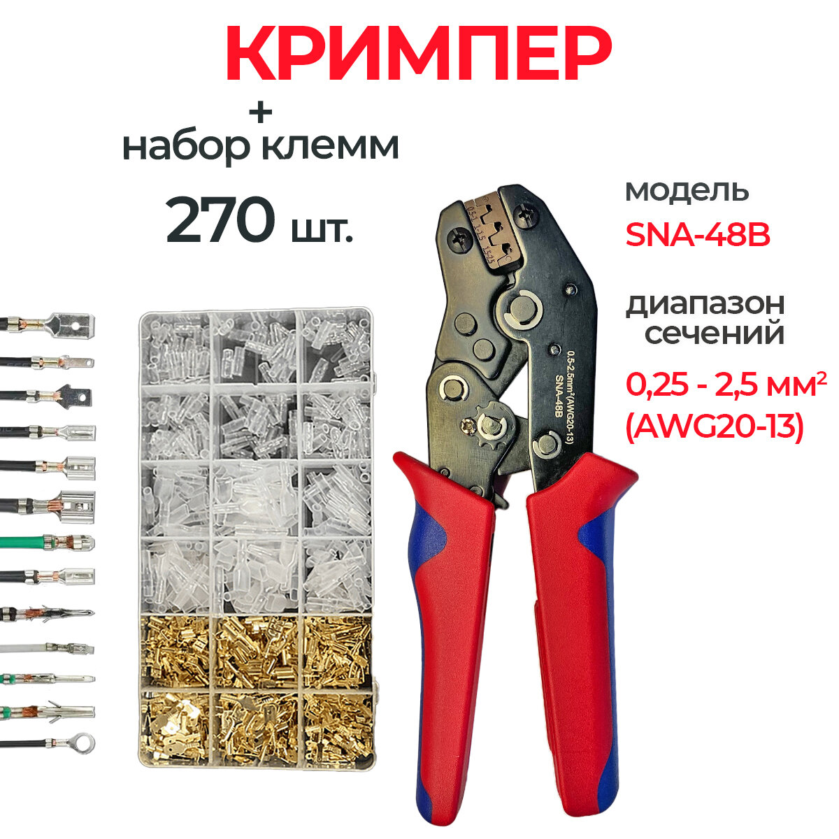 Обжимные клещи SNA-48B и набор клемм 270шт
