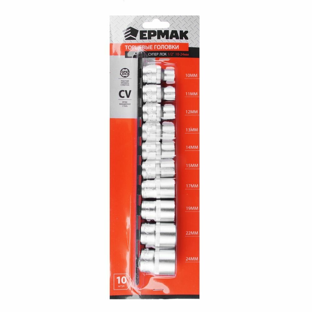 Купить Набор торцевых головок ермак "Супер лок" (10шт) 1/2" 10-17-19-22-24мм