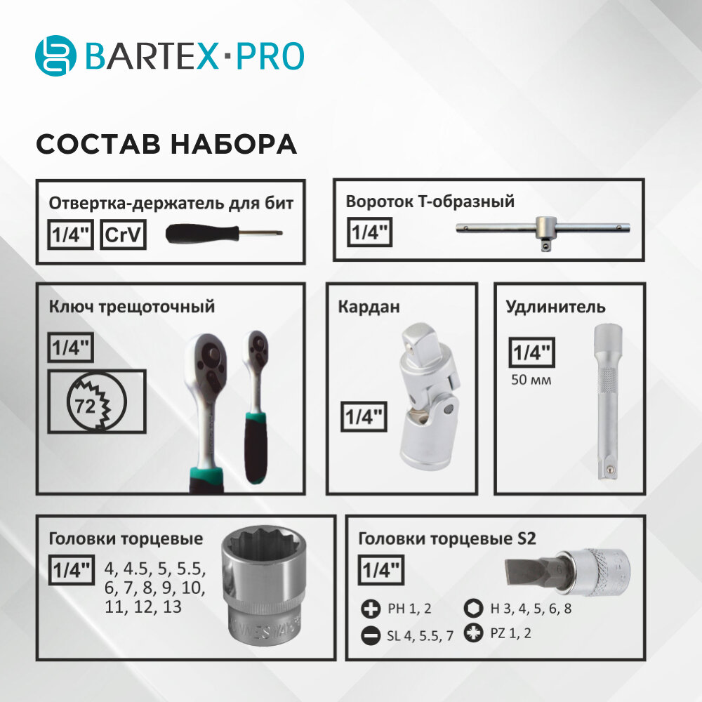 Набор слесарных инструментов Bartex, 1/4", CrV сталь, кейс, 57 пр, шт