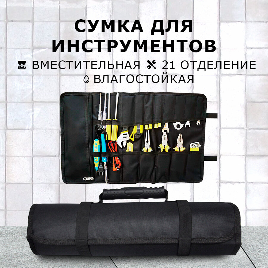 Сумка для инструментов с ручкой, 21 отсек, нейлоновая, универсальная