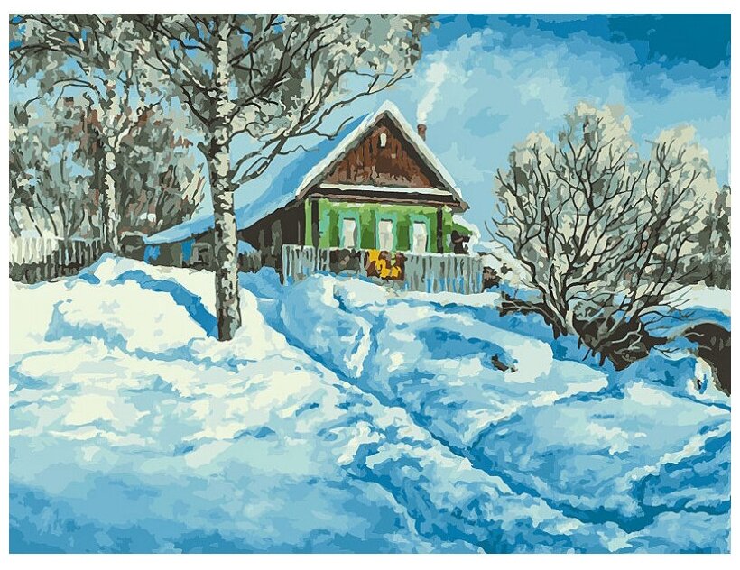 Купить Картина по номерам Белоснежка "Домик на горе" / Раскраска / Холст на подрамнике 30х40 см. / Пейзаж / Зима