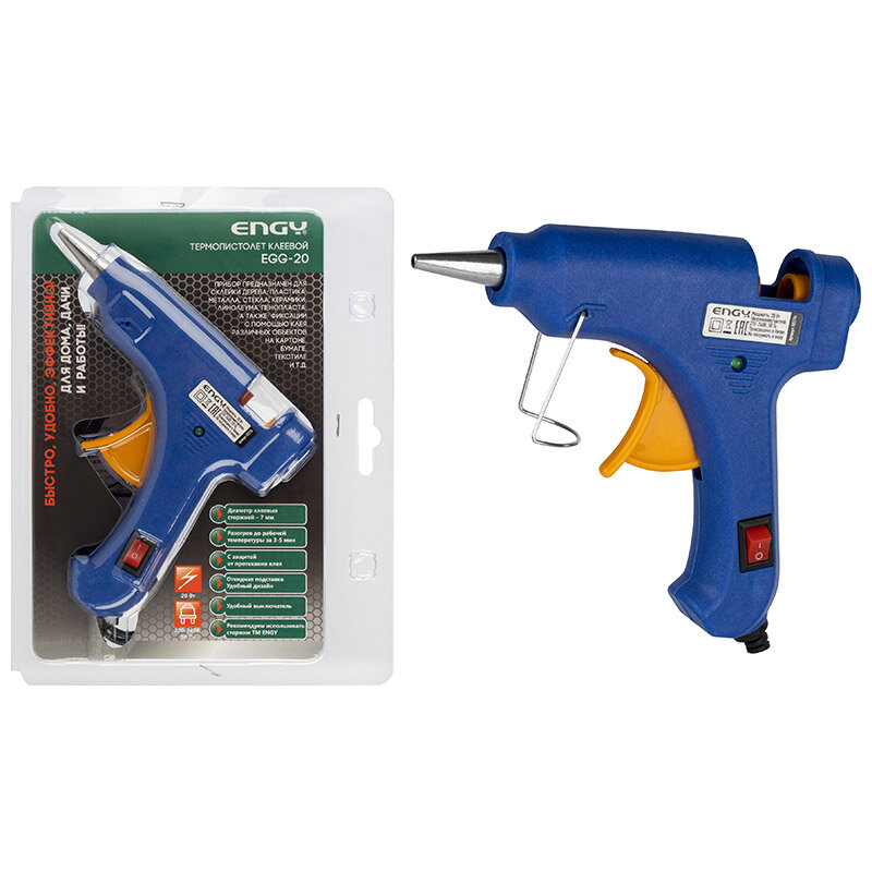 Пистолет клеевой 20W с кнопкой включения и антикаплей EGG-20