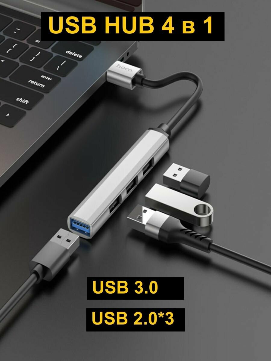 Hoco Разветвитель USB HUB 4-в-1 HB26 USB3.0+USB2.0 серебро (Серебряный)