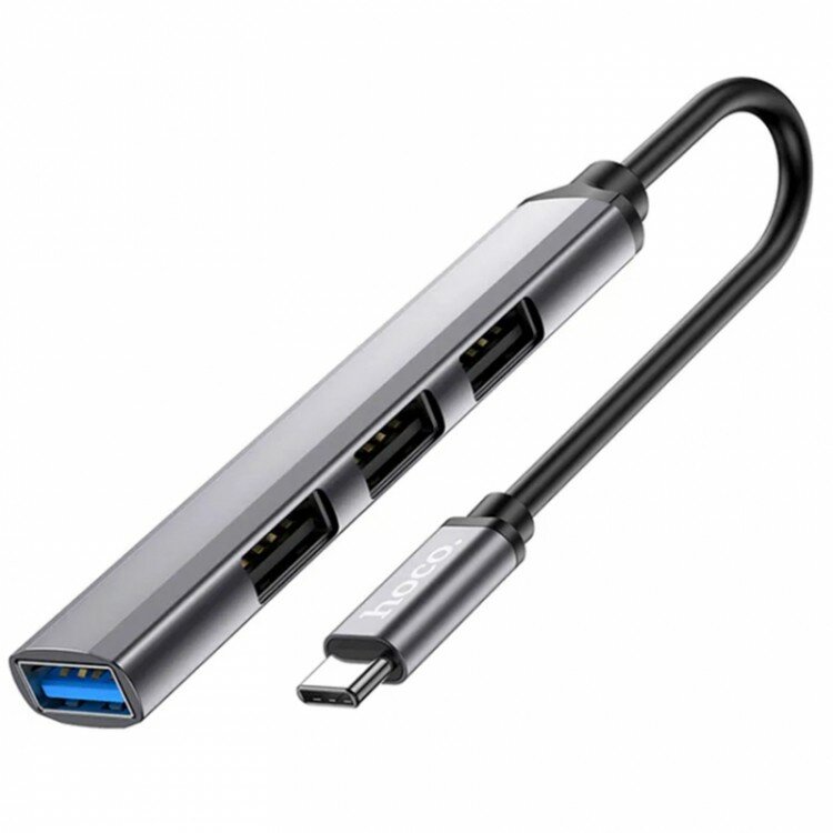 USB-C Хаб HOCO HB26 4 in 1 3хUSB 2.0 + 1xUSB 3.0 (серый)