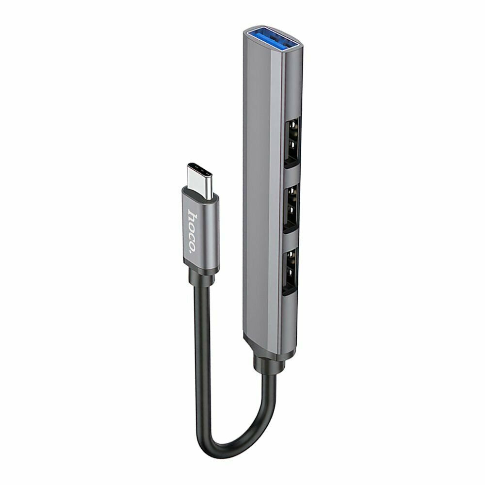 USB-C Хаб HOCO HB26 4 in 1 3хUSB 2.0 + 1xUSB 3.0 (серый)