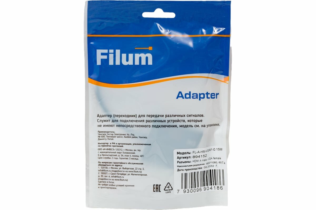 Адаптер-переходник Filum HDMI-VGA, 0.15м, /FL-A-HM-VGAF-0.15M/