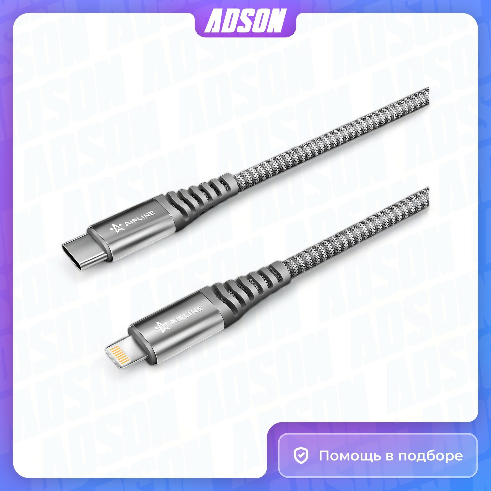 Кабель Type-C - Lightning Iphone/Ipad Поддержка Pd 2М, Серый Нейлоновый Ach-C-40 AIRLINE арт. ACH-C-40