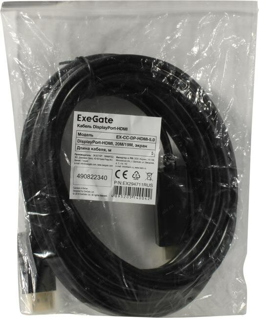 Exegate Ex294711rus Кабель DisplayPort-HDMI ExeGate EX-CC-DP-HDMI-5.0 (20m/19m, 5м, экран)