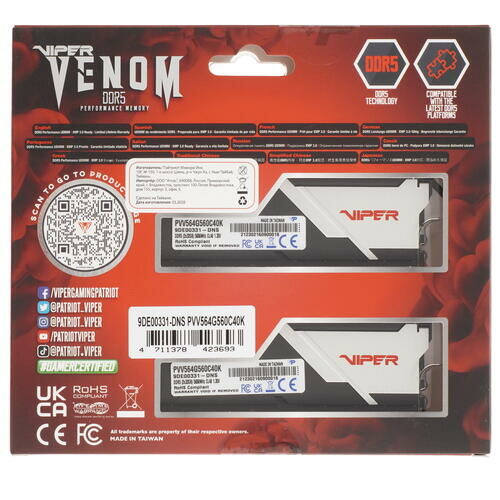 Оперативная память Patriot Memory VIPER Venom (32 ГБ x 2 шт.) DDR5 5600 МГц DIMM CL40 PVV564G560C40K