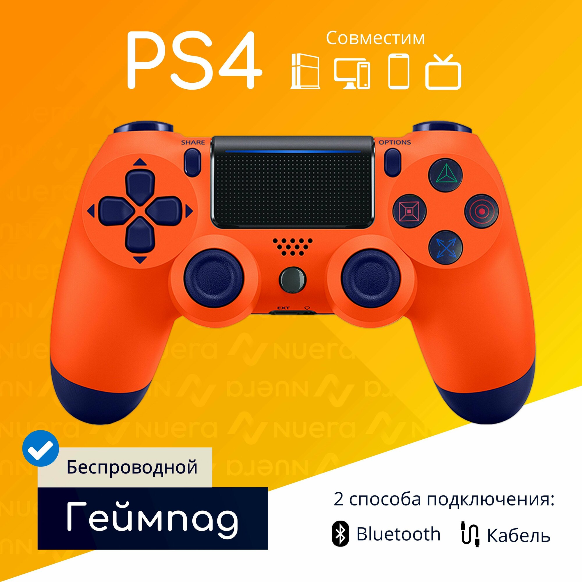 Беспроводной геймпад для PS4 с зарядным кабелем, оранжевый / Bluetooth / джойстик для PlayStation 4, iPhone, iPad, Android, ПК / Original Drop