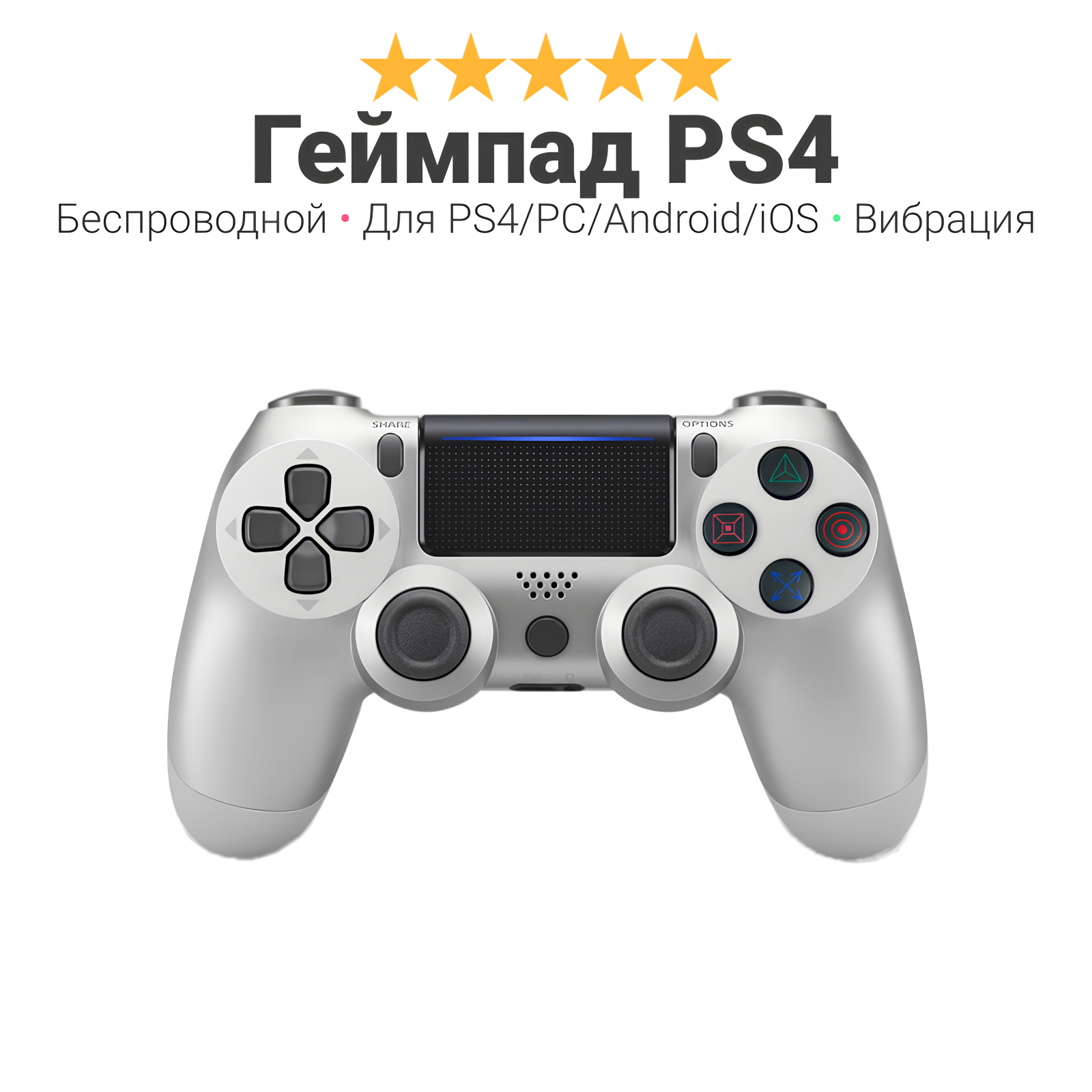 Геймпад ps4 беспроводной Wireless, для PlayStation 4, ПК, iOs, Android, блютус, USB, серебряный
