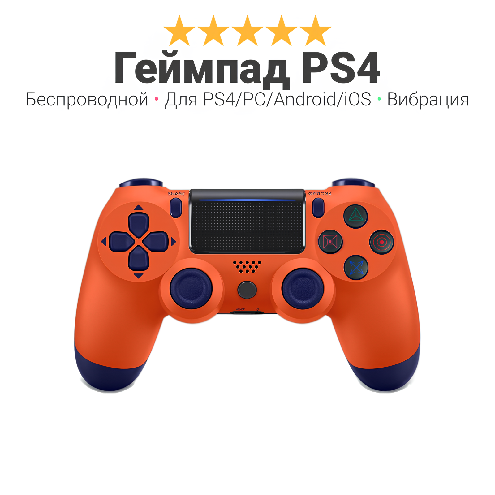 Купить Геймпад ps4 беспроводной Wireless, для PlayStation 4, ПК, iOs, Android, блютус, USB, оранжевый