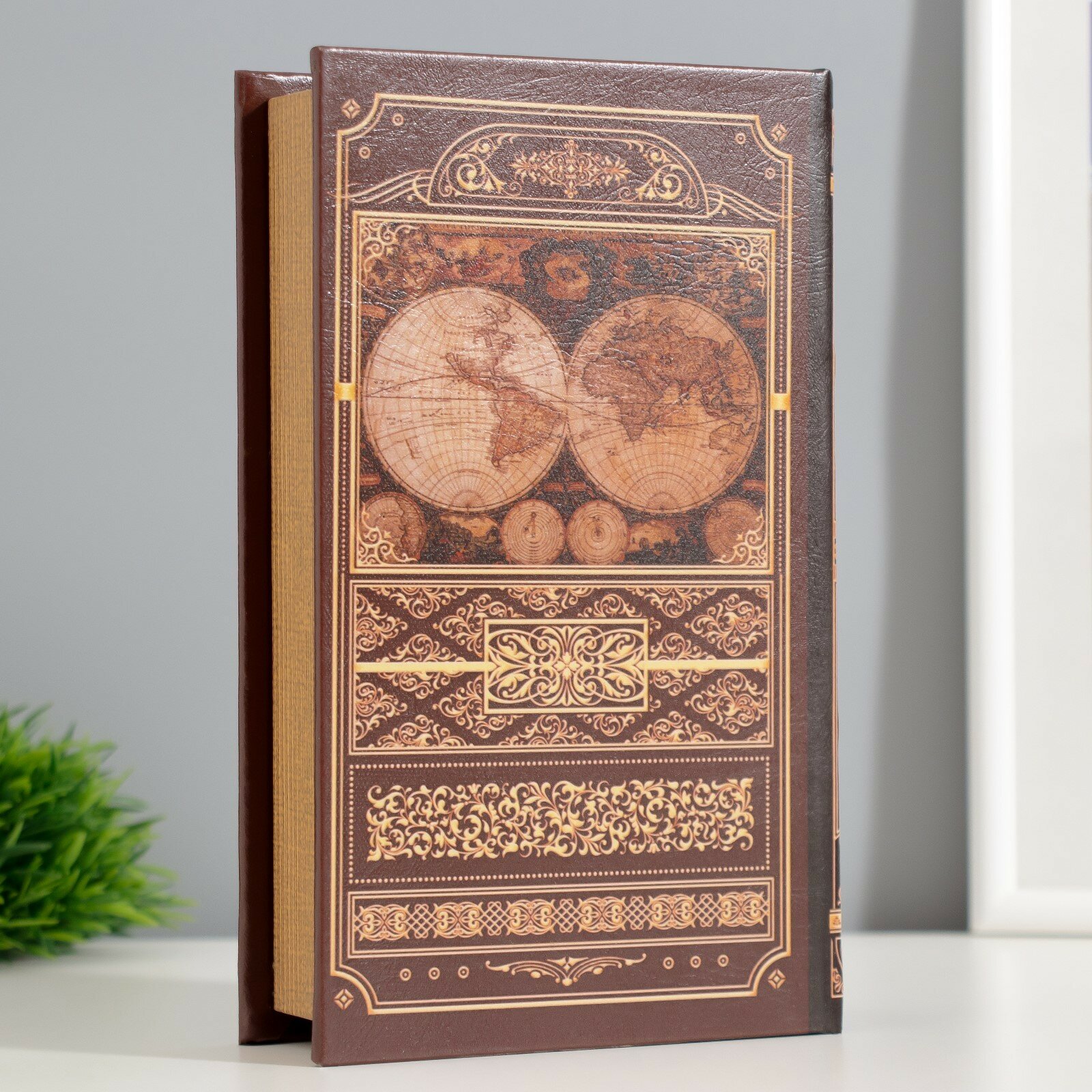 Купить Сейф дерево книга кожзам"Атлас Мира"21х13х5 см 3622167 .