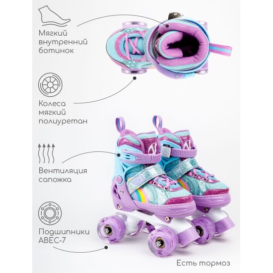 Ролики раздвижные AmaroBaby Disco со светящимися колесами фиолетовый 26-29