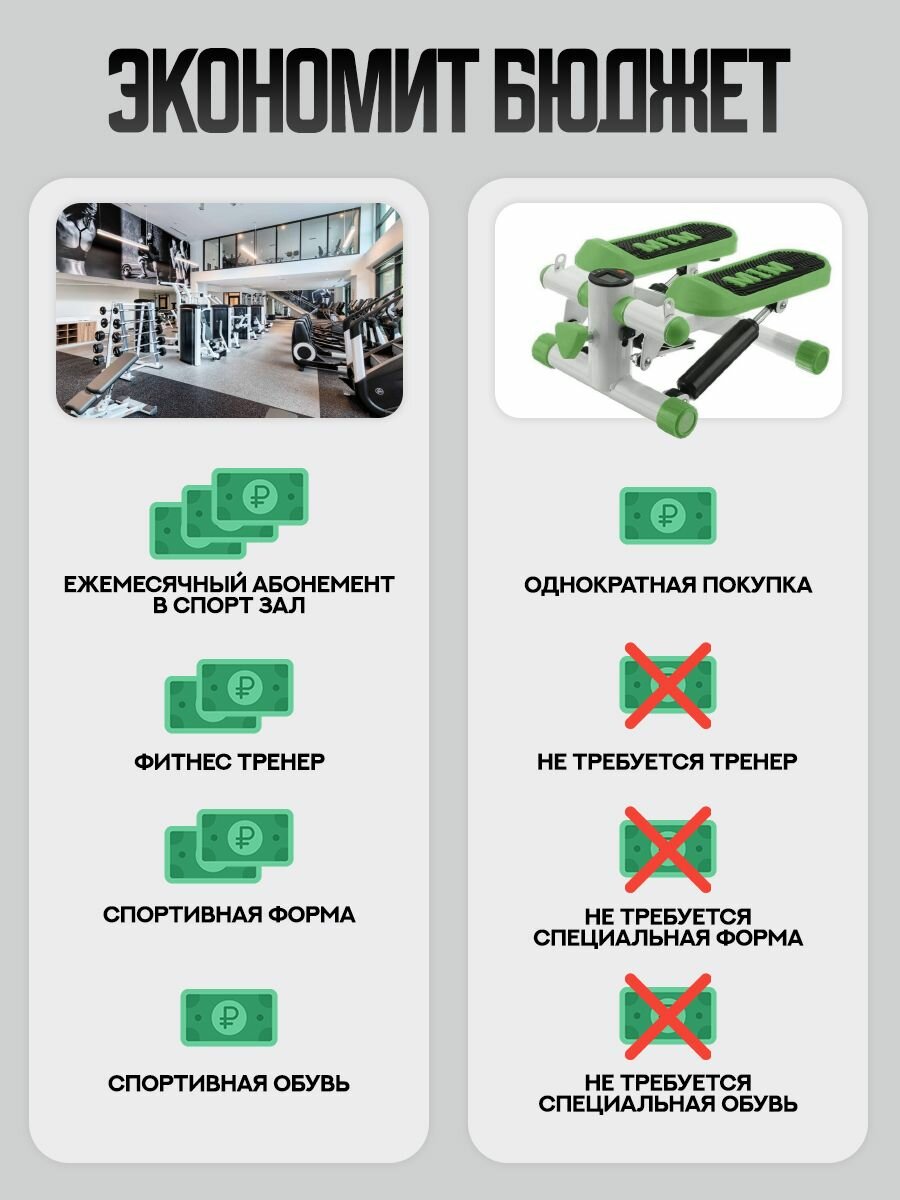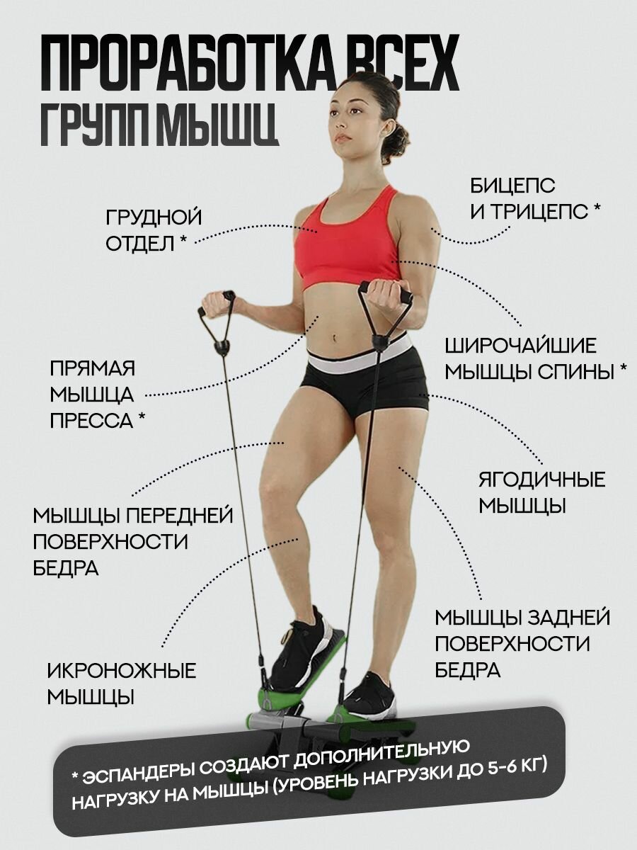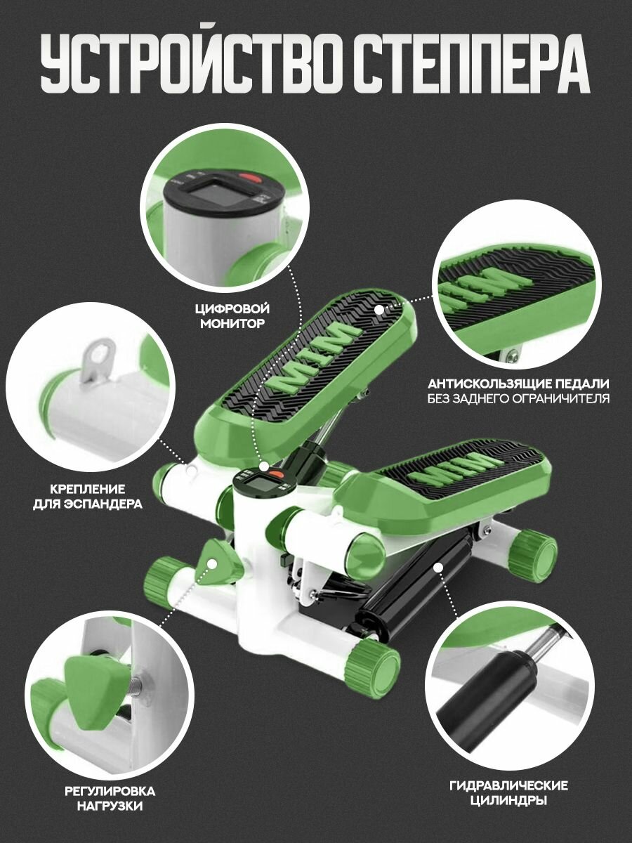 Мини-степпер с эспандерами для ног и ягодиц Best&Bella, зеленый интересное:
