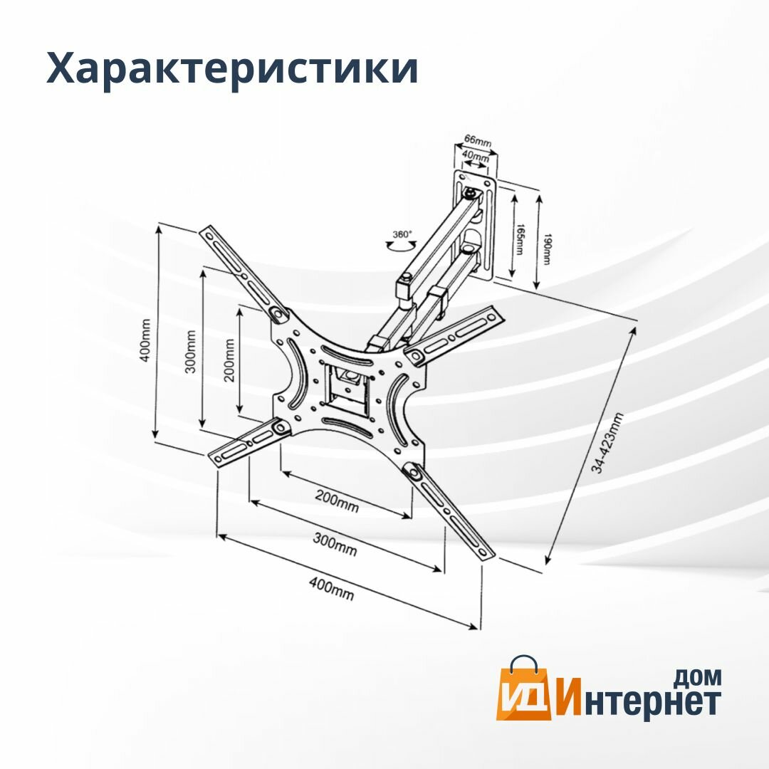 Кронштейн для ТВ, диагональ 32"-55", настенный, наклонно-поворотный интересное:
