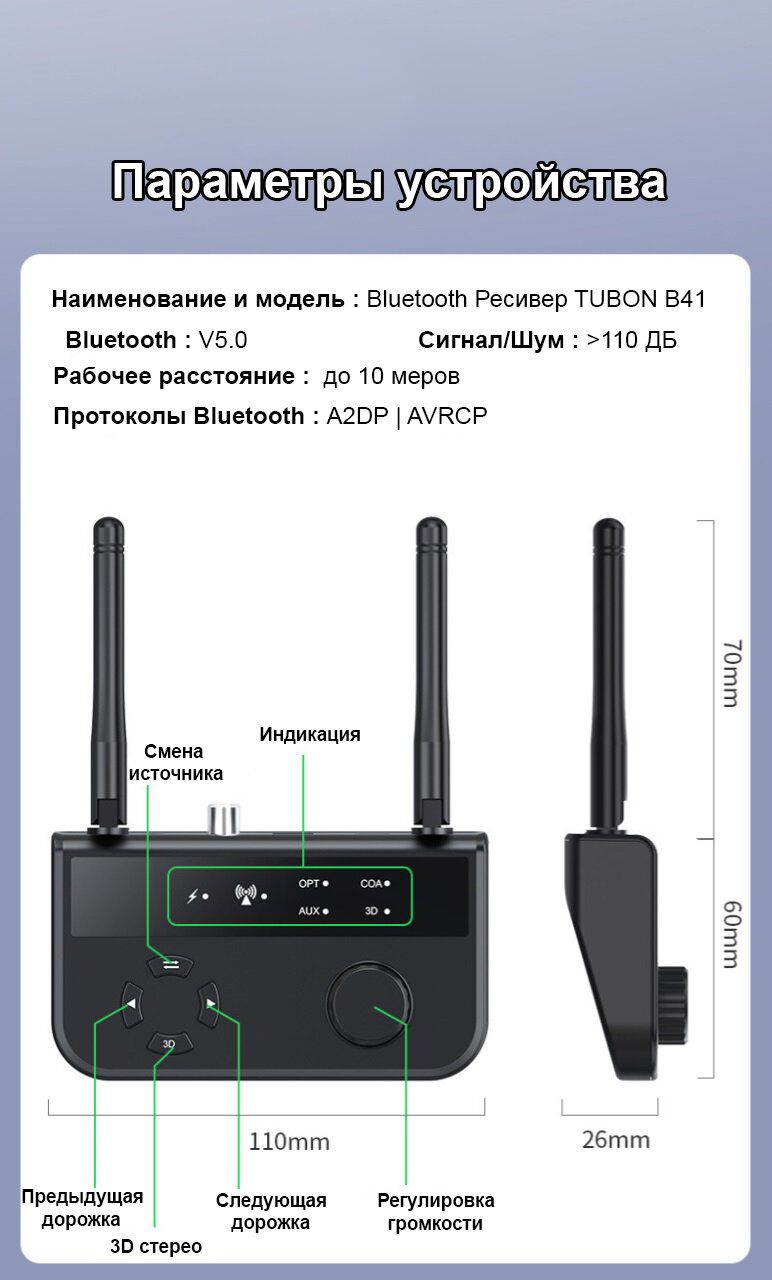 Адаптер Bluetooth Ресивер (приёмник аудио) AUX, Coaxial, Toslink. B41 интересное: