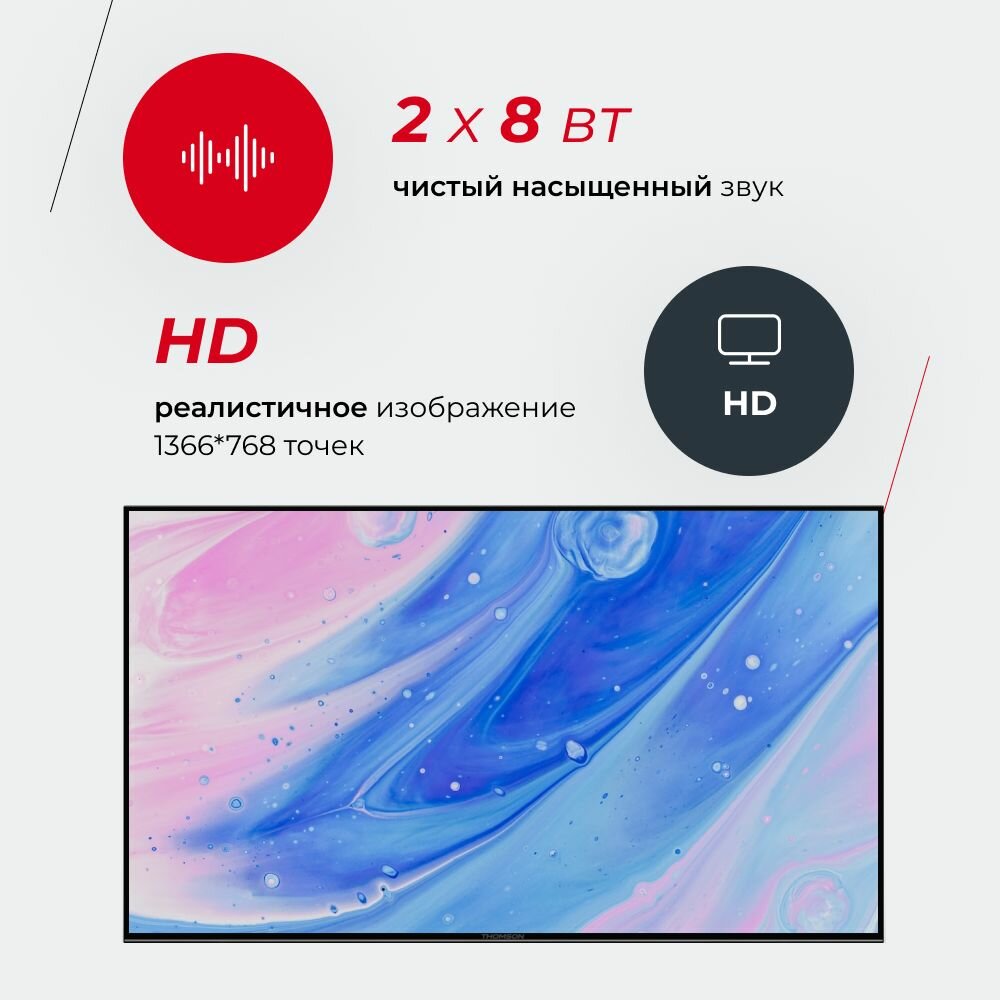 | Отзыв: | брал не себе, заадача была на кухню поставить чтото небольшое с беспроводным изображением с компа, естественно бюджетное. этот томсон подошел очень. общая масса телевизоров поизводится от 32". в моей ситуации много. 24 идеально. качетво Картинки впечатлило, настроек масса. бесроводное подключение не один миракаст, весь спектр, даже не есть точка доступа своя (тв создает). блюоус в двух направлениях. праодные интерфейсы все оснгвные. кабель инет rj, hdma, usb, обычная антеннна, 3.5 наушники, тюльраны rca вход джек, в комплекте переходник с тюльпанами мама. в итоге микс вход -выход можно подобрать под любую задачу.