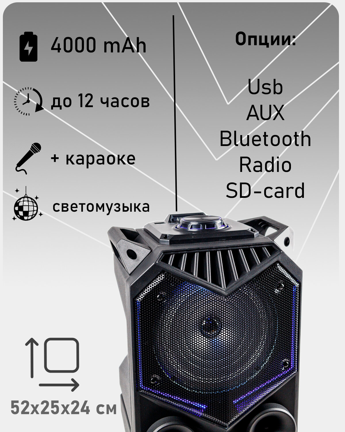 Напольная Портативная колонка BT SPEAKER ZQS-1819 Bluetooth, с микрофоном и светомузыкой