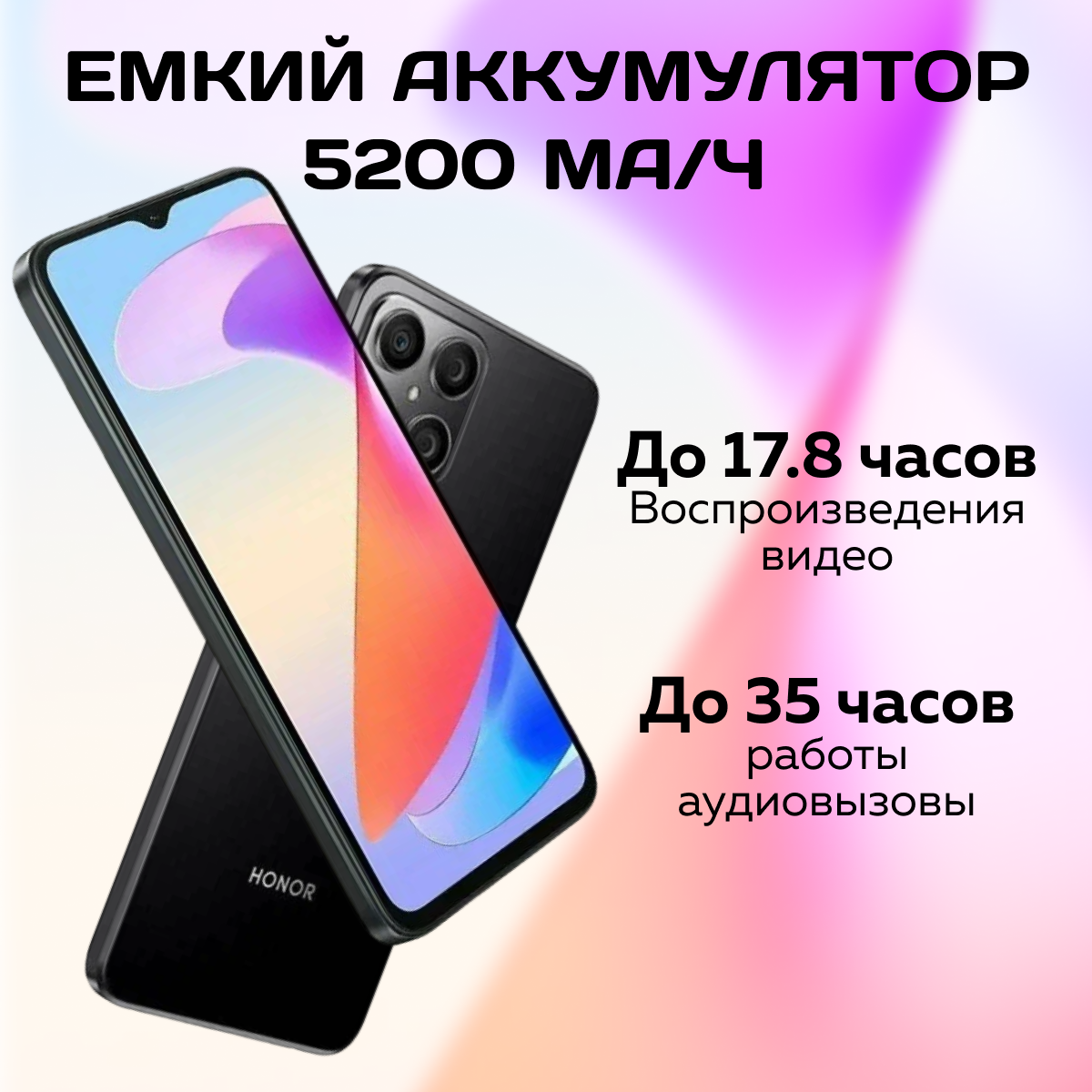 Смартфон HONOR X6A 6/128 ГБ RU, Dual nano SIM, midnight black