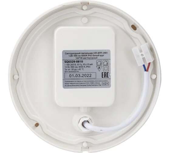Светодиодный светильник LED ДПП 2901 12Вт 990 лм 4000К IP65 белый круг 160*48 мм Народный, TDM SQ0329-0810 (1 шт.)