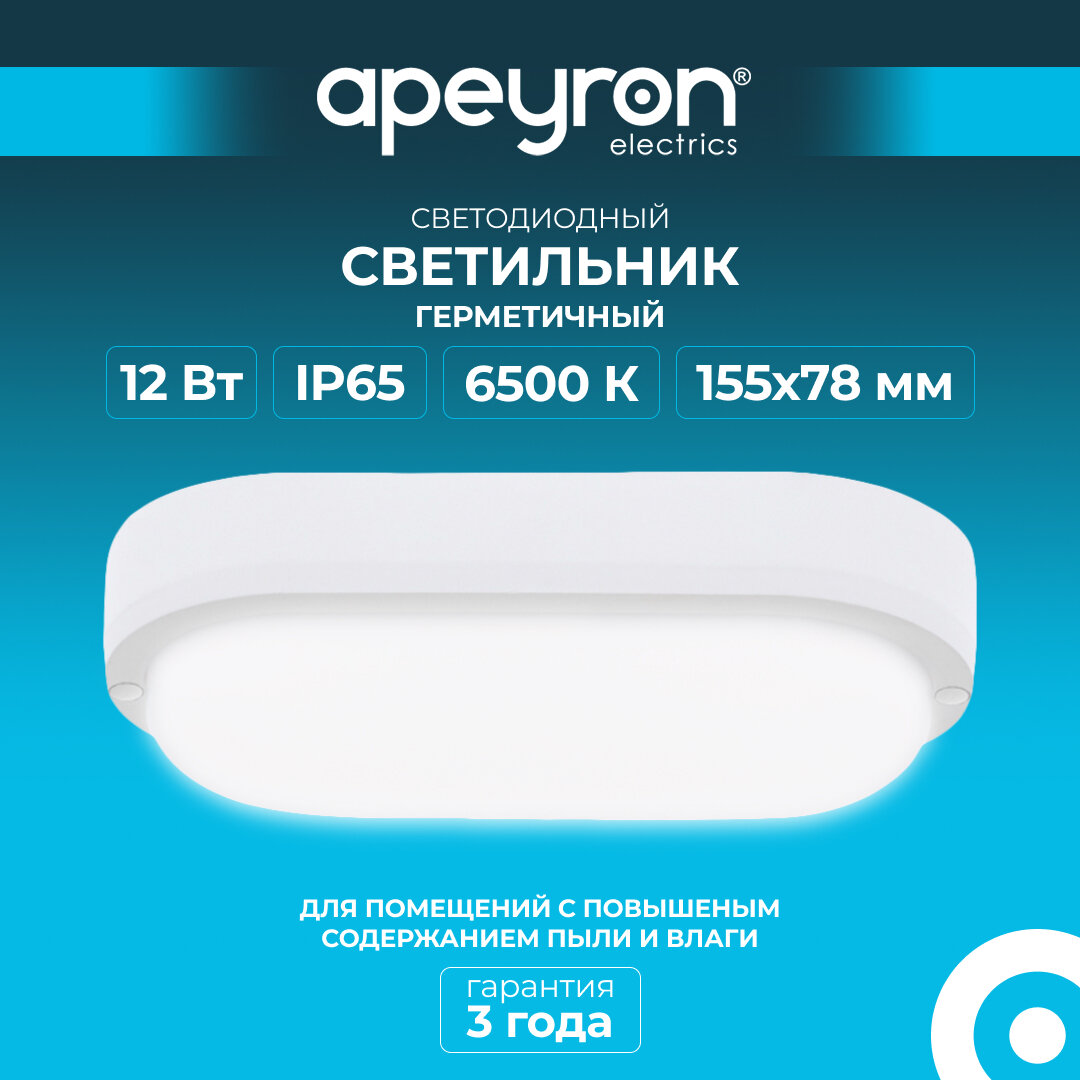 Светильник светодиодный Apeyron 28-08 герметичный 12Вт, 230В/50Гц, 970Лм, 6500К, IP65, 155х78х55мм, овал, матовый, белый