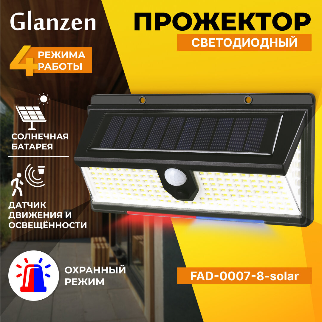 GLANZEN Светодиодный прожектор на солнечных батареях c датчиком движения FAD-0007-8-solar КА-00008963 интересное: