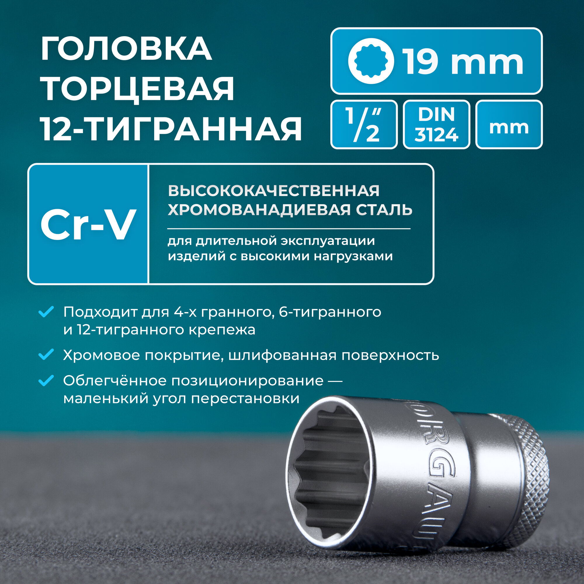 Головка на 19 NORGAU Industrial под квадрат 1/2 двенадцатигранная с шариковой фиксацией и шлифованной поверхностью, DIN 3124 интересное: