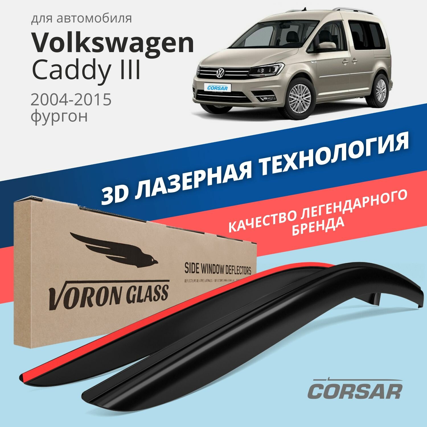Купить Комплект Дефлекторов Серия Corsar Volkswagen Caddy Iii 2004-Н.в. /Фургон/Накладные/Скотч/К-Т 2Шт./ Voron Glass арт. DEF00549