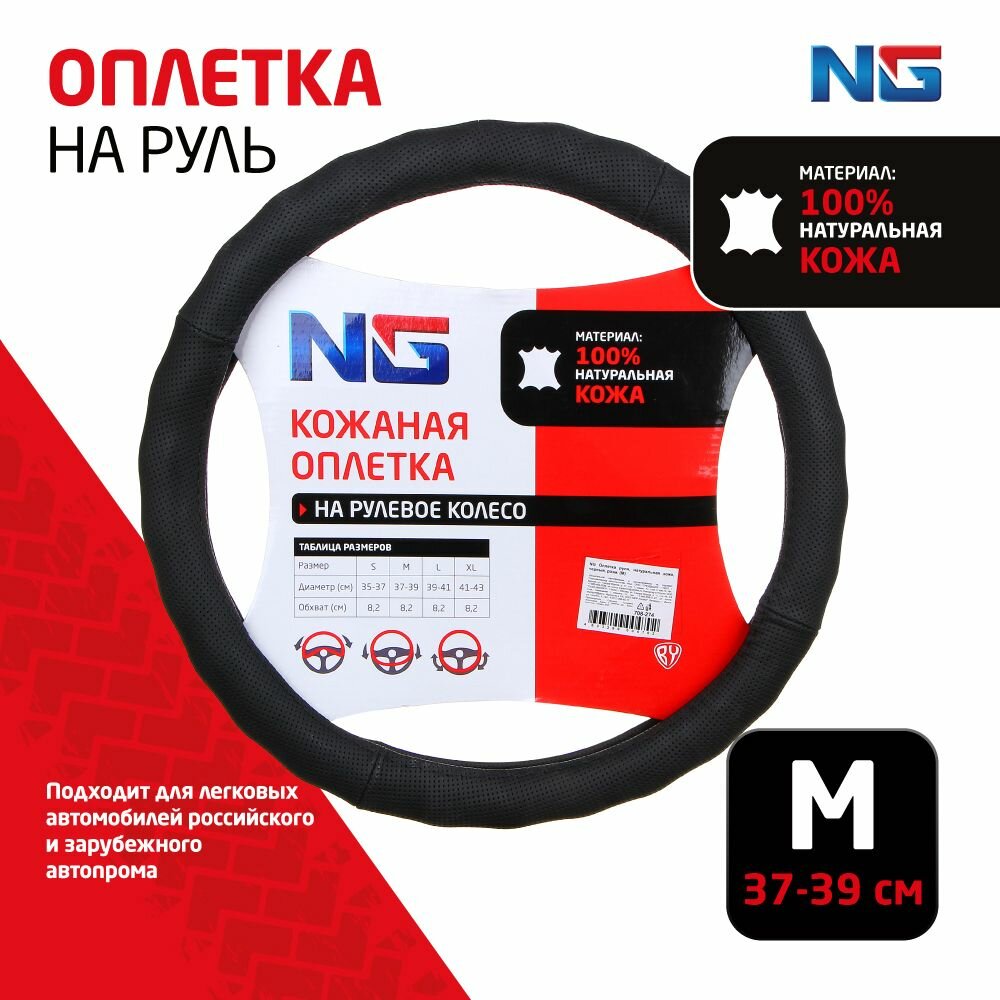 Купить Оплетка руля NG, натуральная кожа, черный, разм. (М)
