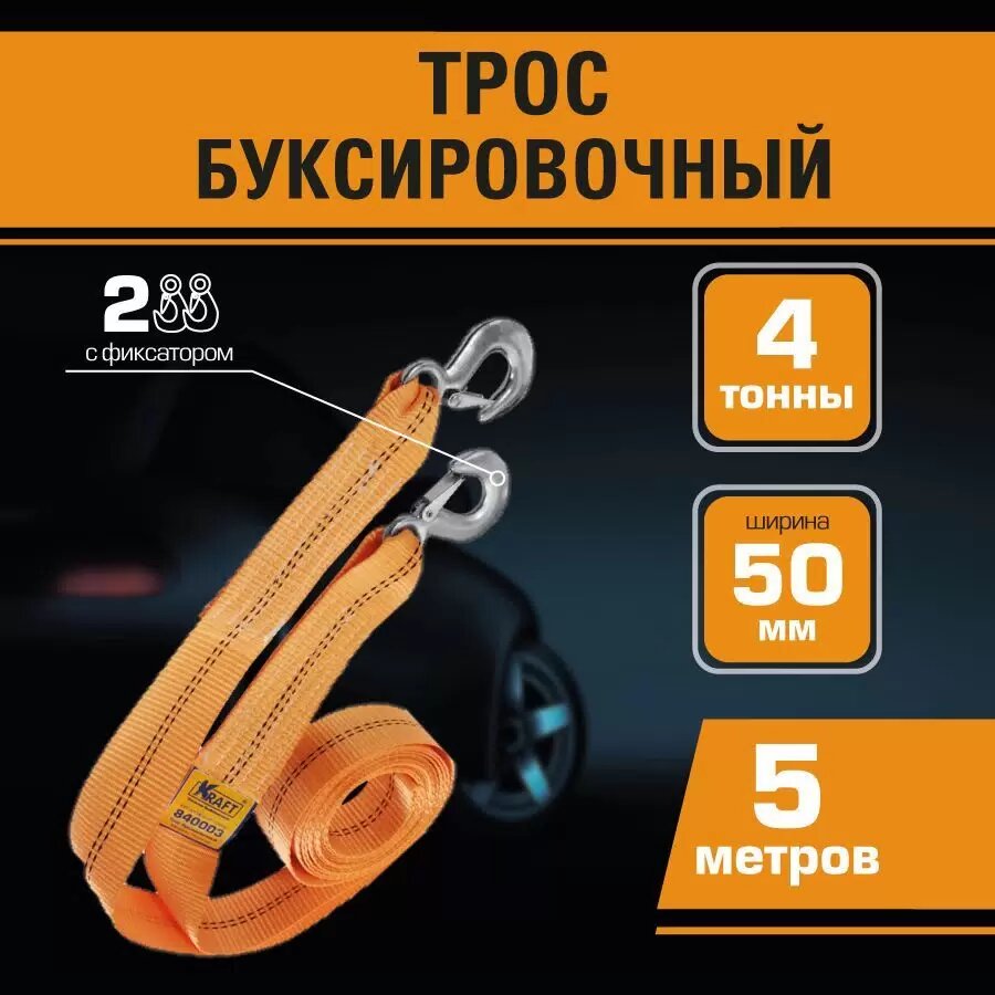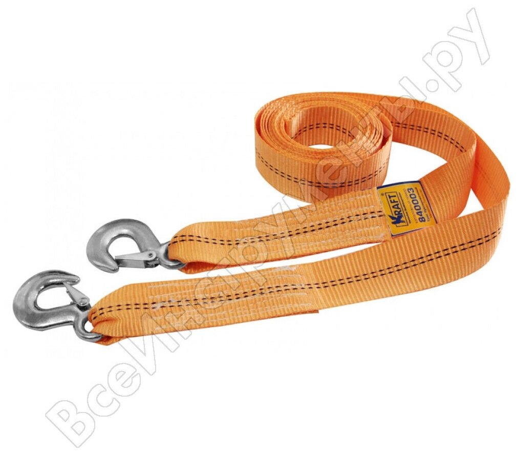 Трос буксировочный лента 4 т 5 м 2 крюка Kraft KRAFT KT840003 | цена за 1 шт