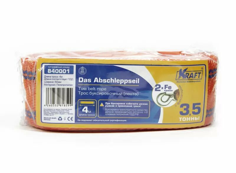 СохранитьТрос буксировочный 4 тонны KRAFT Kraft KT840003 интересное: