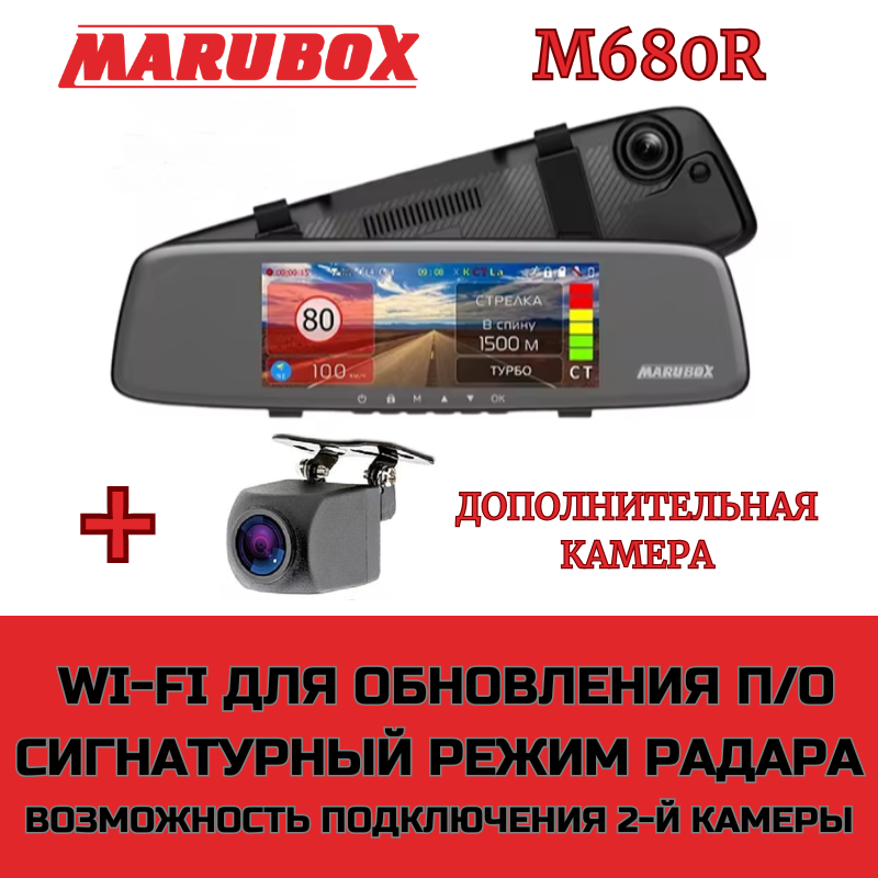Ниже Вы можете прочитать отзывы на Видеорегистратор с радар-детектором Marubox M680R + доп. камера Marubox M68FHD, ознакомится с подробными характеристиками, посмотреть интересные обзоры и фотографии на Видеорегистратор с радар-детектором Marubox M680R + доп. камера Marubox M68FHD.