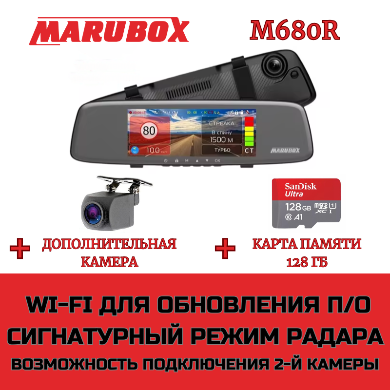 Купить Видеорегистратор с радар-детектором Marubox M680R + доп. камера Marubox M68FHD + карта памяти 128Gb