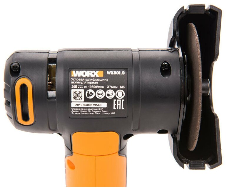 Угловая шлифмашина (болгарка) WORX WX801.9 20V 76мм аккумуляторная без батареи и зарядки