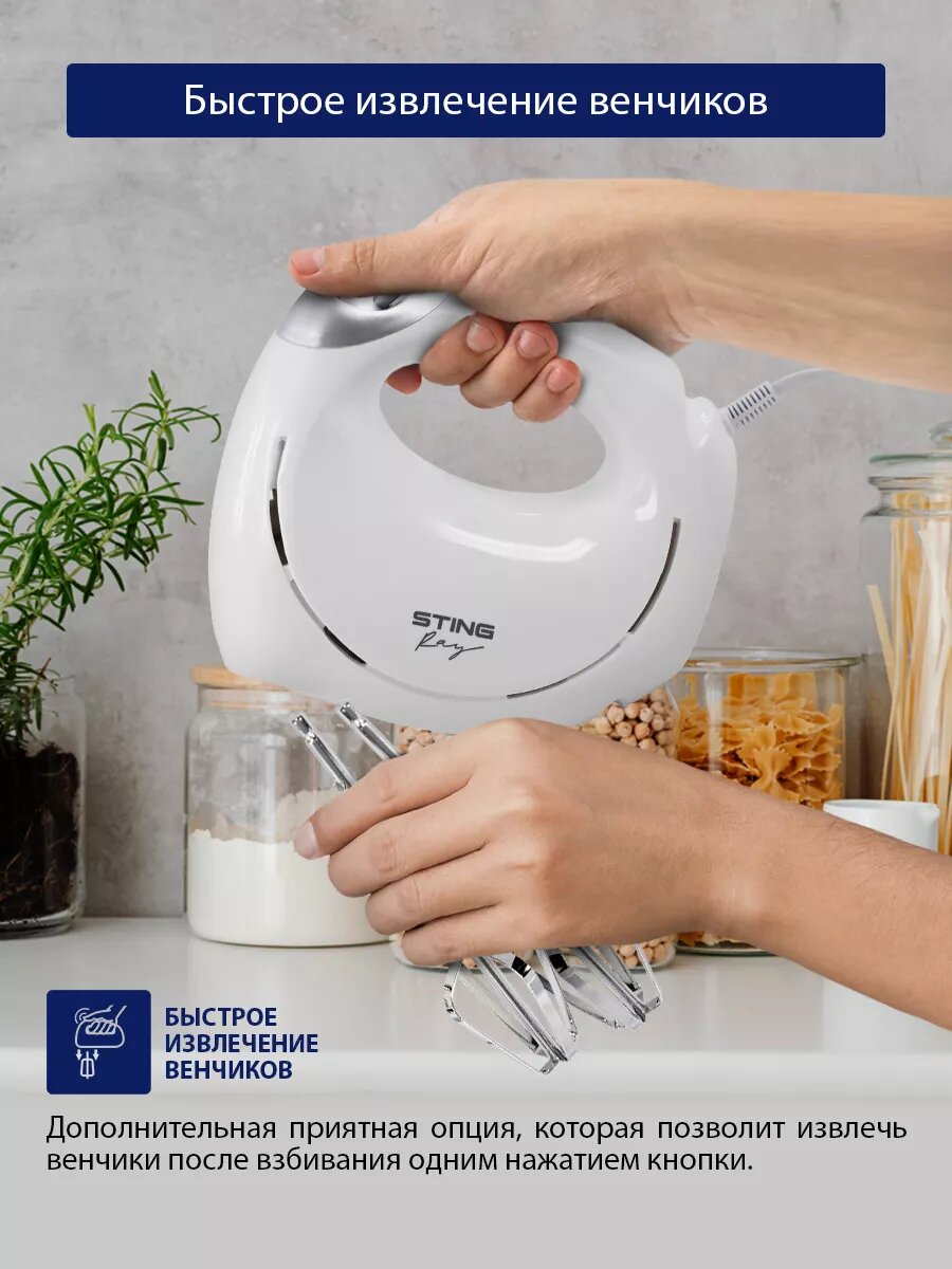 Миксер ручной STINGRAY ST-MX2001A белый/сталь