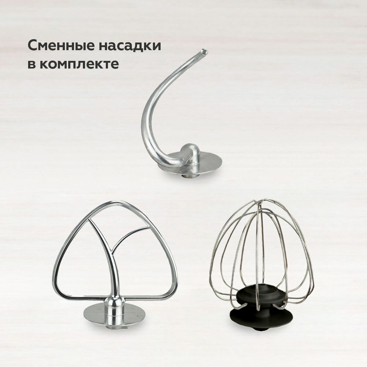 | Насадки | венчик для взбивания / крючки для замешивания теста / лопатка / венчик для взбивания / крючки для замешивания теста |