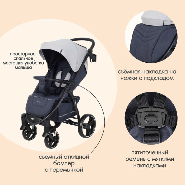 Коляска детская Rant прогулочная, Basic Alpine, цвет бежевый, с корзиной и подстаканником (4670078629838)
