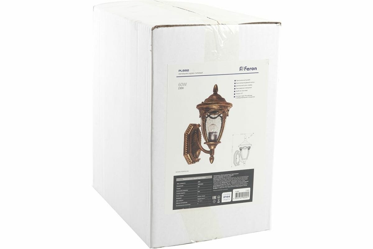 Светильник садово-парковый PL682 на стену вверх 60W 230V E27, черное золото, FERON 11693 (1 шт.)