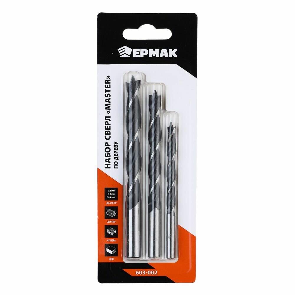 Набор сверл по дереву с М-образной заточкой ермак, серия MASTER (3 шт.6, 8, 10 мм) интересное: