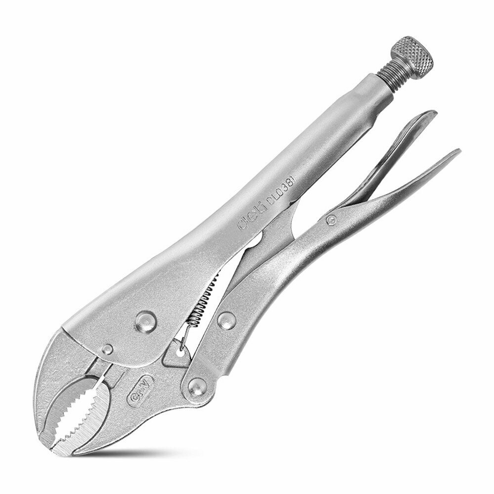 Купить Зажимные клещи (ручной зажим) с изогнутыми губками с фиксатором регулируемые Deli DL0381 220мм (рабочий ход 55мм, CrV)