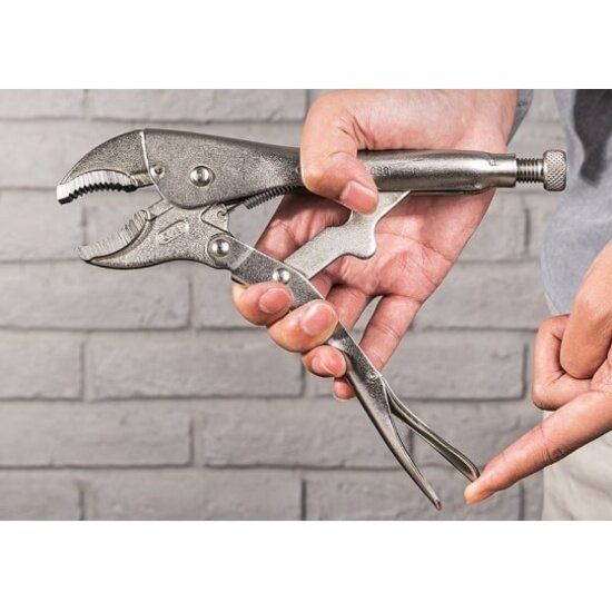 СохранитьЗажимные клещи (ручной зажим) с изогнутыми губками с фиксатором регулируемые Deli DL0381 220мм (рабочий ход 55мм, CrV) интересное: