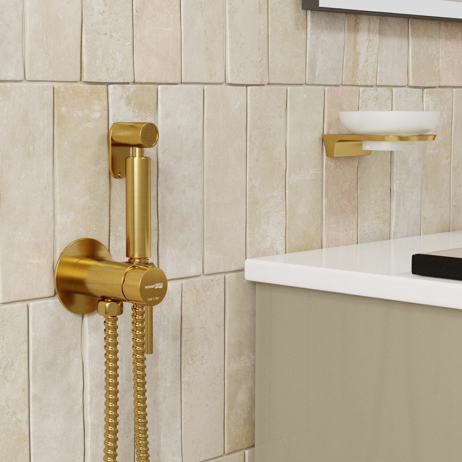 Встраиваемый смеситель для душа с гигиенической лейкой WasserKRAFT A70838 из латуни с PVD-покрытием "матовое золото"