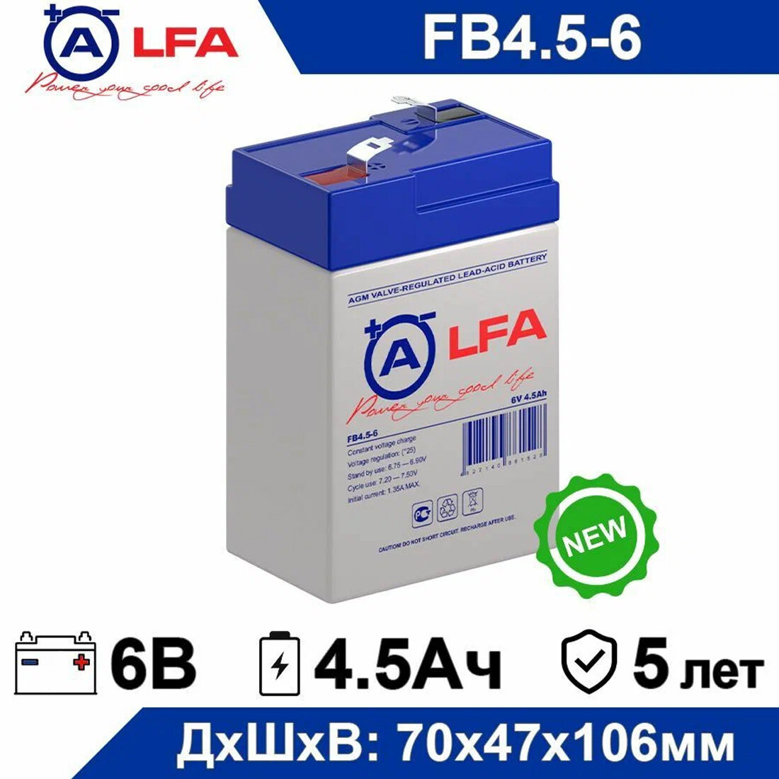 Свинцово-кислотный аккумулятор ALPHA BATTERY FB 4.5-6 (6 В, 4.5 Ач)