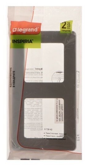 | Комплектация | декоративная рамка / Рамка 2-м Inspiria алюм. Leg 673942 / рамка |