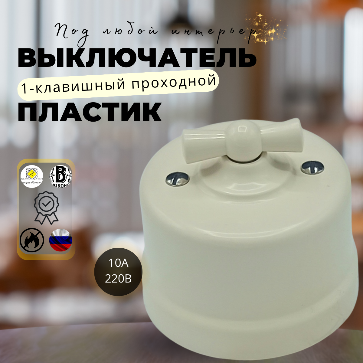Перекрестный Винтажный ретро выключатель пластик, слоновая кость (бежевый) B1-203-211 Bironi