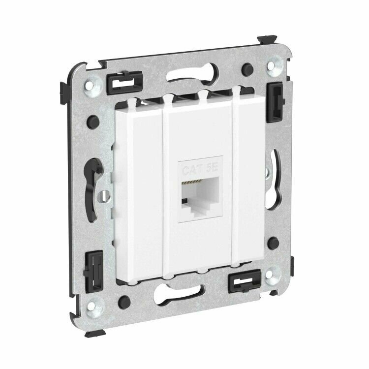 DKC Компьютерная розетка RJ-45 без шторки в стену, кат.5е одинарная, "Avanti", "Белое облако"